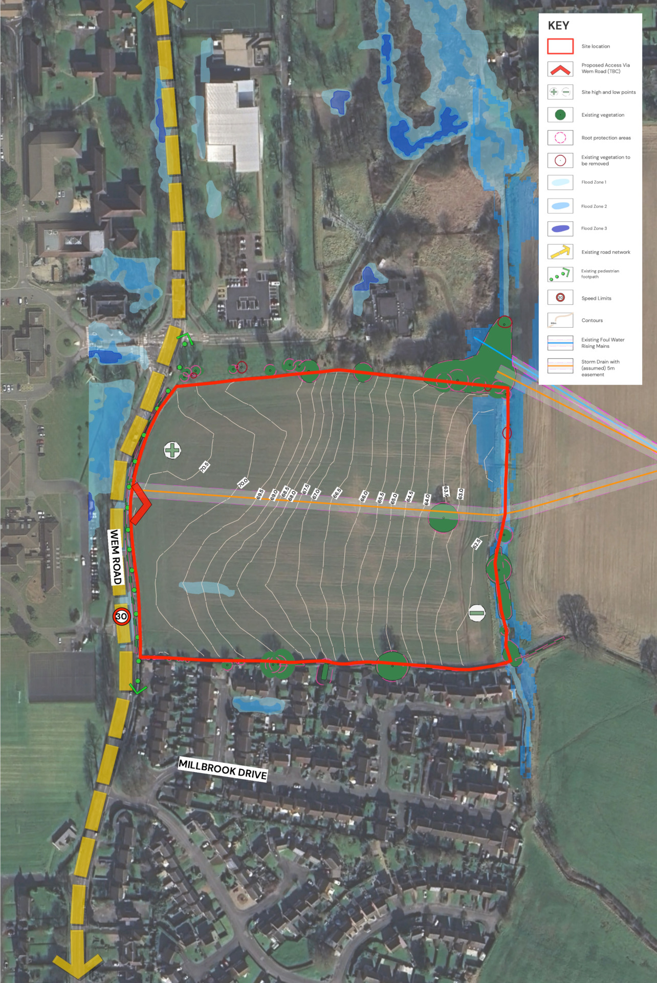 In preparing the concept layout for the site, the technical team appointed by Bloor Homes first of all considered the landscape, drainage features, topography and local context of the site. The accompanying plan shows some of the features and constraints that have informed the emerging outline proposals.